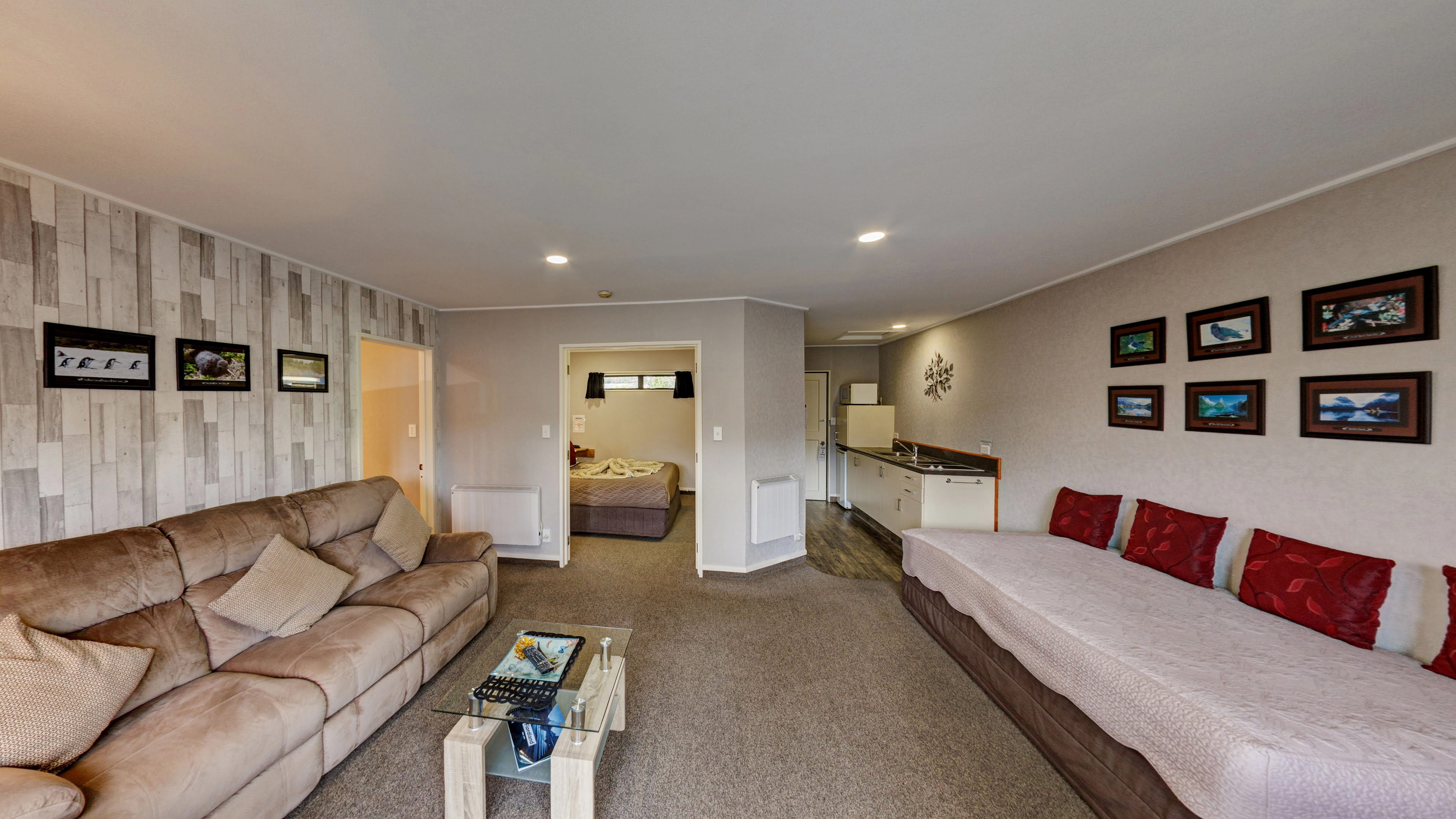 Perfect for families or small groups of up to 4 guests, these units offer a queen bed in a separate bedroom. In the lounge, you’ll find a king single and a pull-out single rollaway bed. Enjoy the convenience of a kitchenette and the luxury of an ensuite with a double spa bath. Set in a peaceful location, each unit boasts a secluded patio with a touch of lake views.